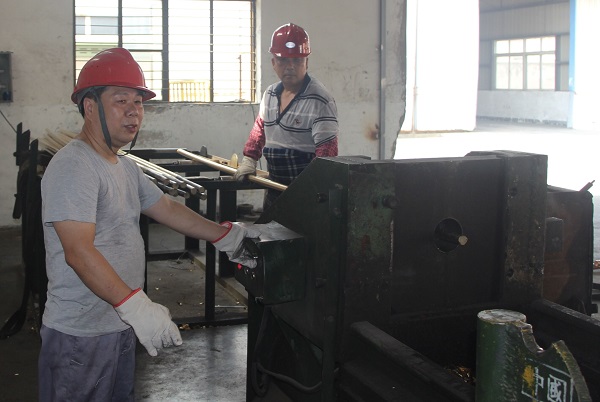 在锯床锯黄铜棒